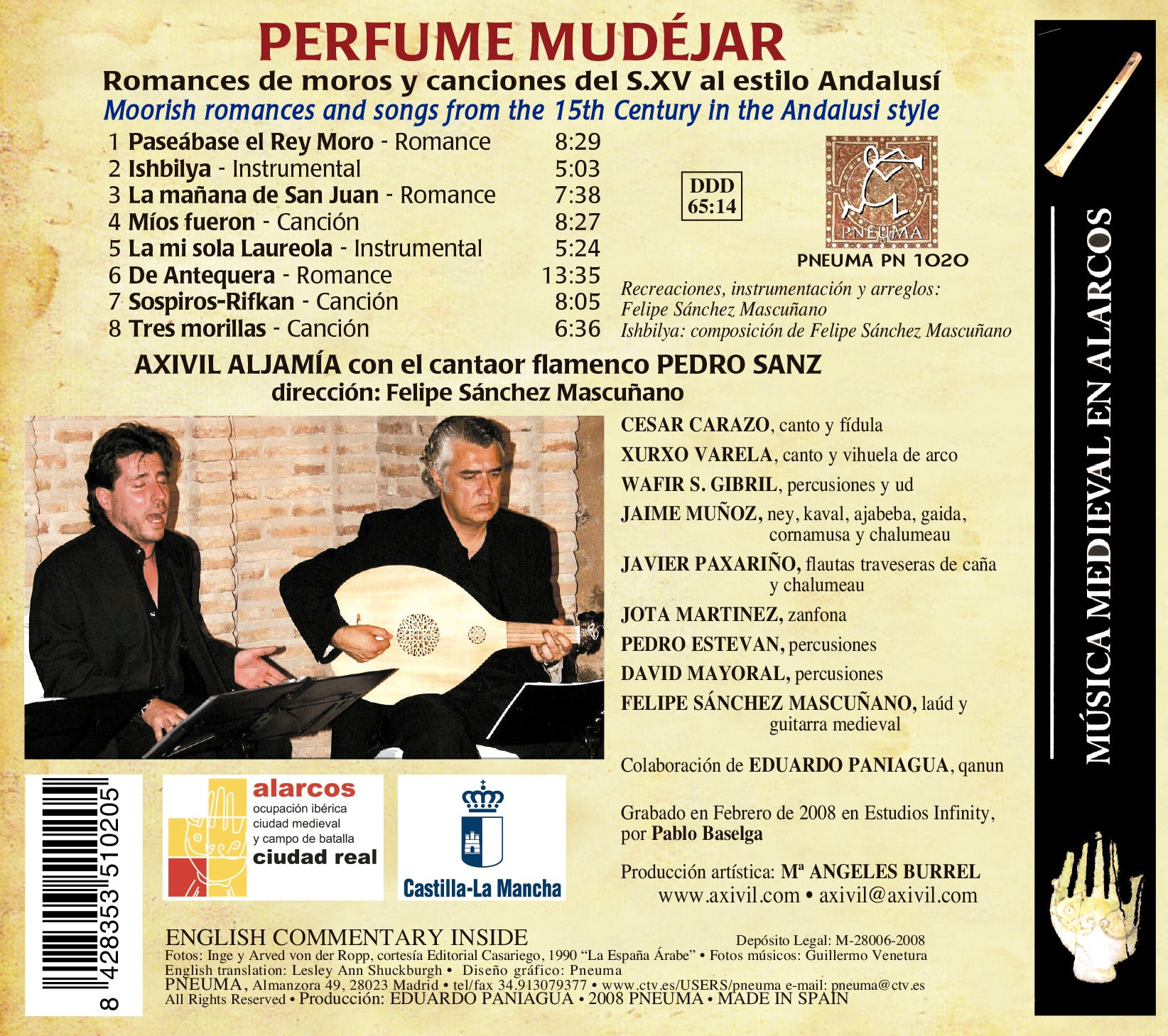 Este CD cubre perfectamente la ideología y objetivos de Pneuma, una colección de música relacionada con la historia de España que, junto al rigor y la documentación, tenga la valentía y la libertad del intérprete para hacer viva la música antigua. Agradezco a Felipe Sánchez Mascuñano la propuesta de que edite su trabajo Perfume Mudéjar en Pneuma, y que además me proponga como intérprete de qanun en su composición Ishbilya.