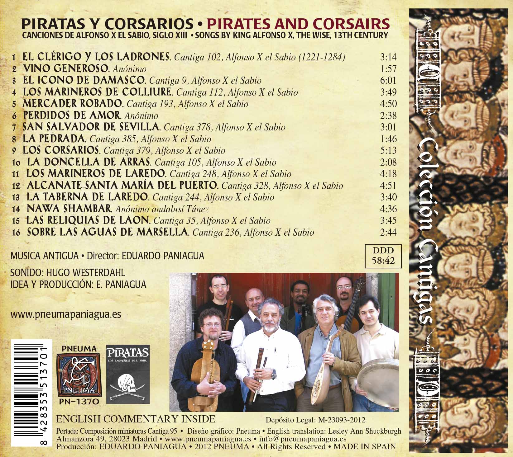 Música medieval española inédita hasta el momento. Sus discos, con formato Digipack de cubierta de cartón y libreto interior (bilingüe + idioma original), quieren acercarse a una obra de arte total.