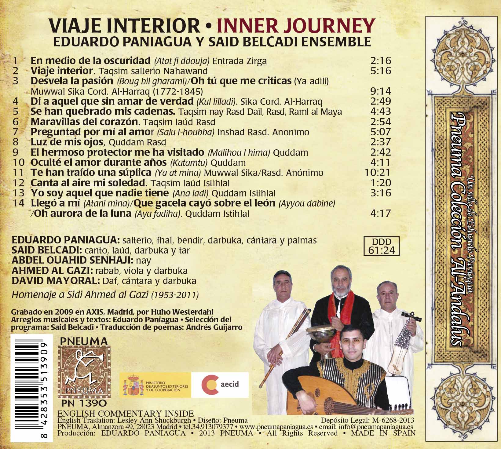 “Viaje interior” es una muestra musical que prolonga la intención del CD anteriormente editado en Pneuma “Pasión Sufí” PN-1120.