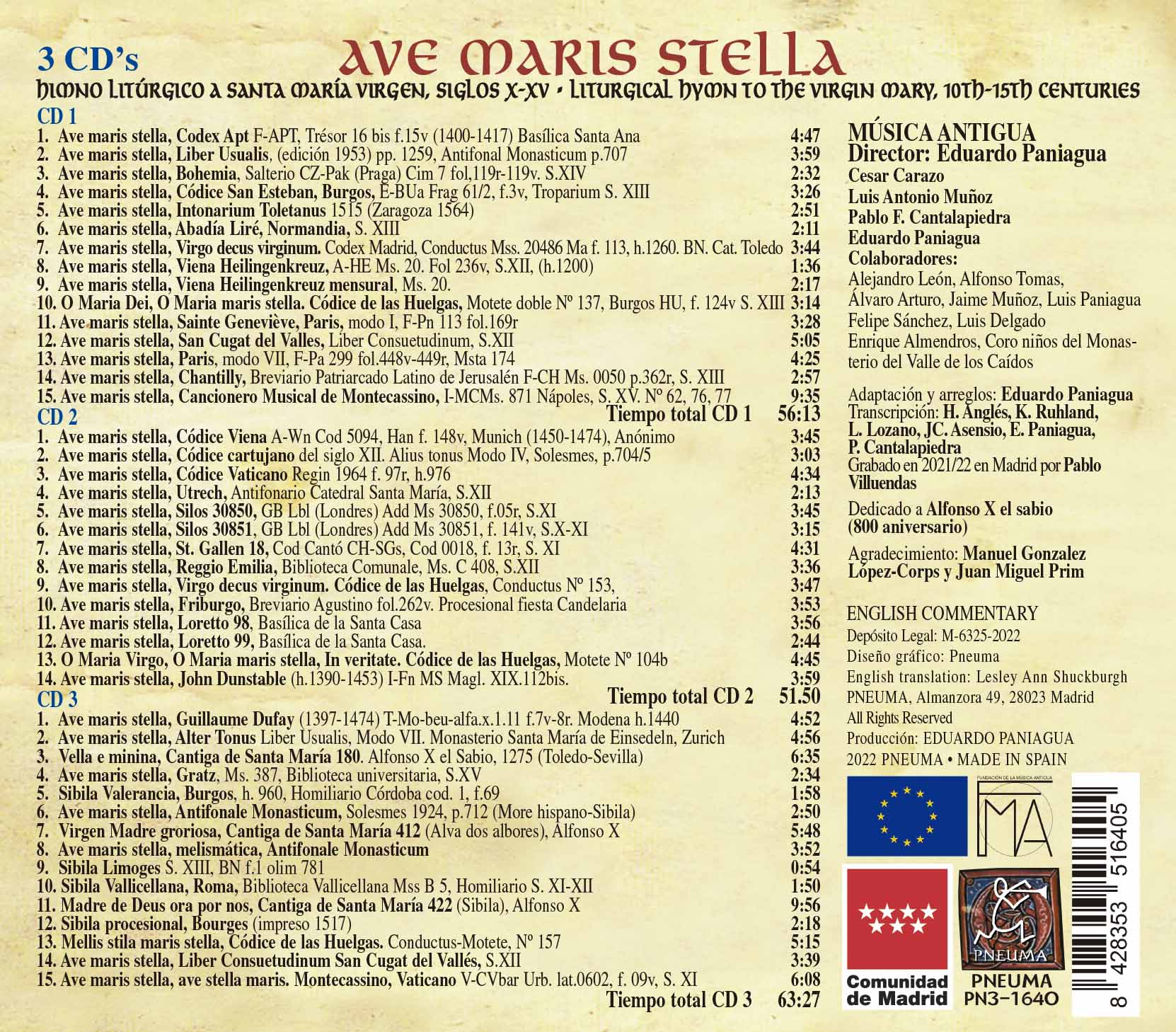 Música medieval española inédita hasta el momento. Sus discos, con formato Digipack de cubierta de cartón y libreto interior (bilingüe + idioma original), quieren acercarse a una obra de arte total.